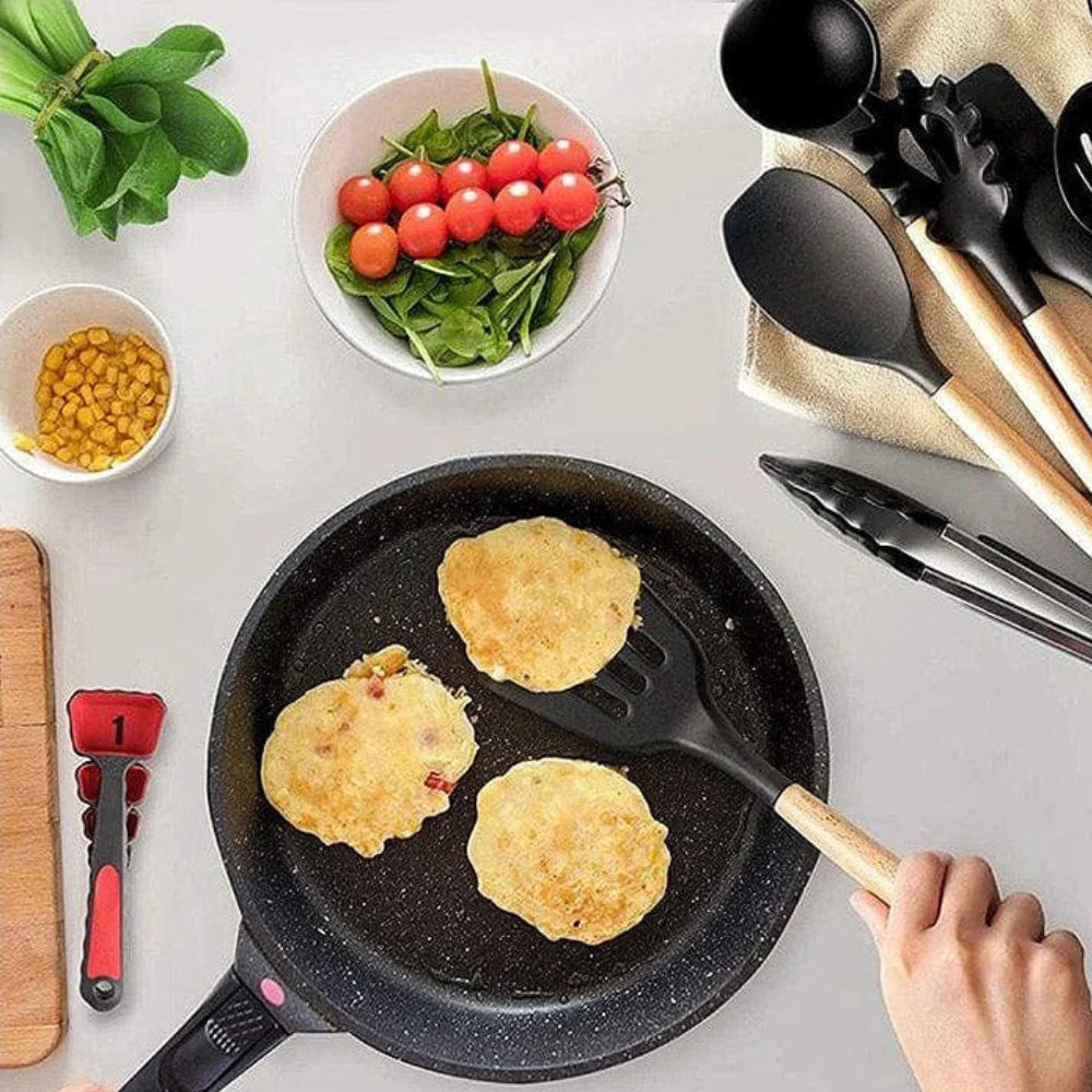 Deixe sua cozinha mais completa, organizada e elegante com o Jogo de 12 Utensílios de Cozinha com Cabo de Madeira. Ideal para o dia a dia, esse kit oferece praticidade no preparo das suas receitas, além de um design moderno que combina com qualquer ambiente.